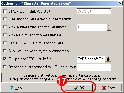 - Back in GPSBabel, you should see Efficasoft-Destination_List.style